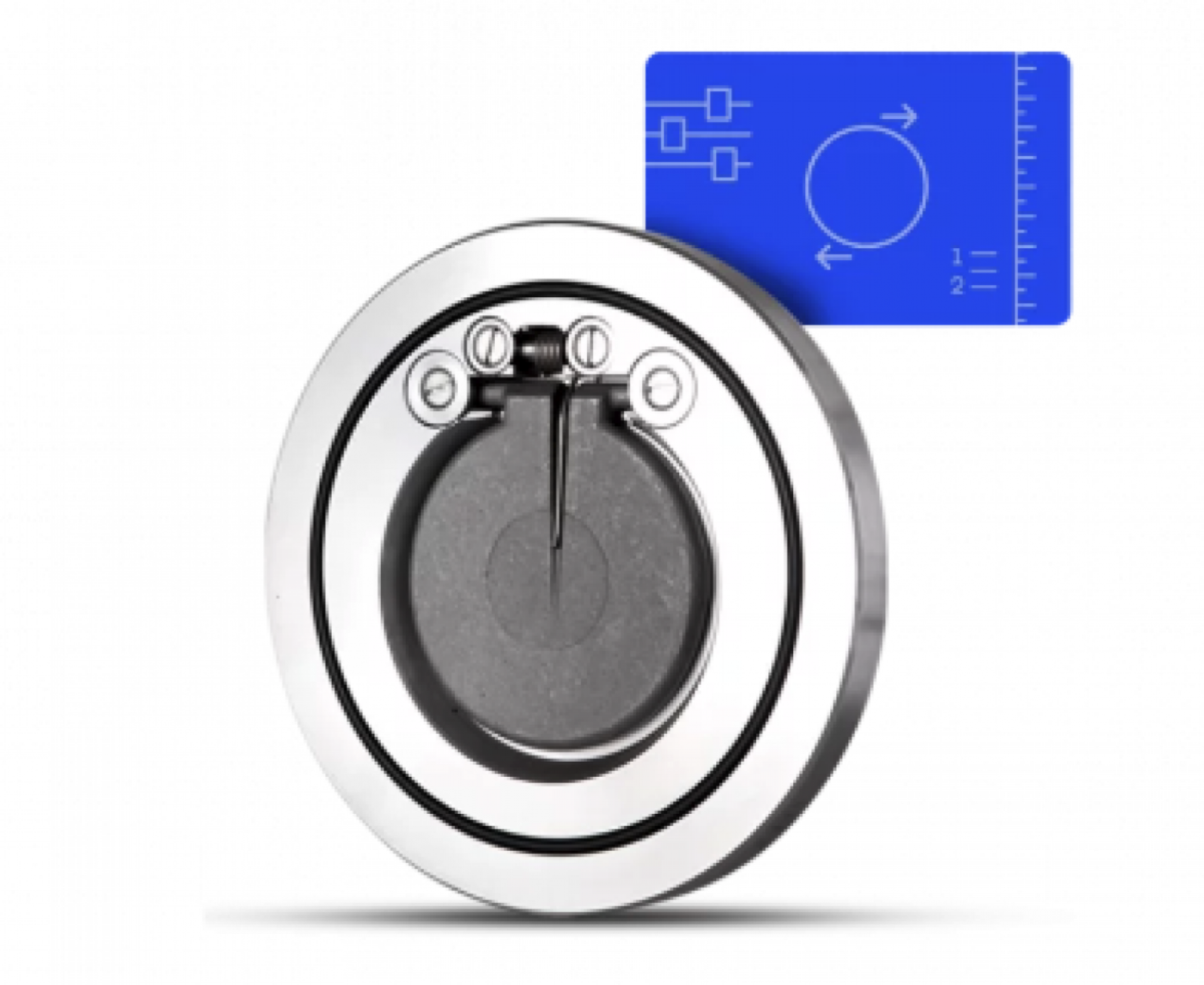 Double plate check valve. Operation is based on fluid pressure: when pressure exceeds a certain threshold, the valve opens, allowing flow. If pressure drops or flow reverses, the valve automatically closes, preventing backflow. Used in high-pressure pipelines. Two types available: Retainer and Retainerless. Self-operating.