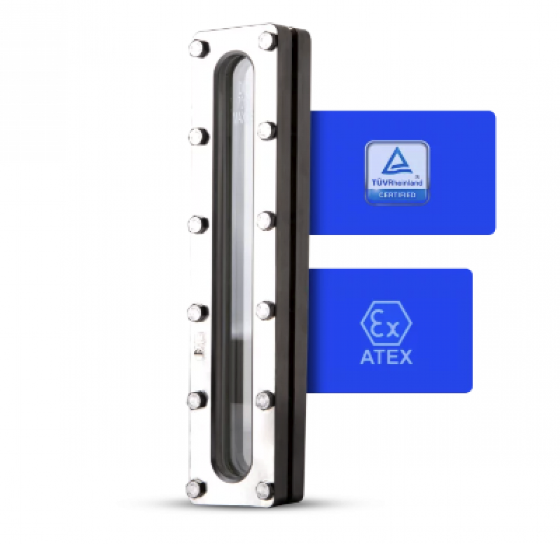 Rectangular sight glasses for tanks and pipelines. Allow direct visual inspection inside pipes or vessels for process monitoring. Applications: food and chemical industries.